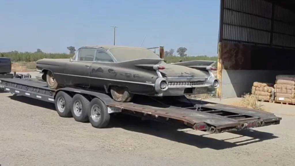 Men även om bilen varit väl omhändertagen, fanns det delar som försummats. Sarah kontaktade ett team som hjälpte henne: de monterade om hjulen, drog bilen på släpet och körde iväg. Bilen startar inte än och kan inte köras. Ett rejält projekt, potentiellt för livet. Men Cadillac Coupe DeVille har en särskild plats i bilindustrins designhistoria. Den kom med dramatiska bakfenor och dubbla kulformade bakljus, en djärv, juvelliknande grill och taklinjer i två distinkta varianter: ett svepande hardtop eller ett valfritt vinyltak.