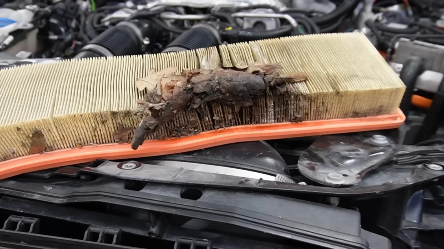 – Nu var det faktiskt nära ett haveri för tiotusentals kronor, säger verkstadsägaren i klippet när han öppnar luftfilterhuset.