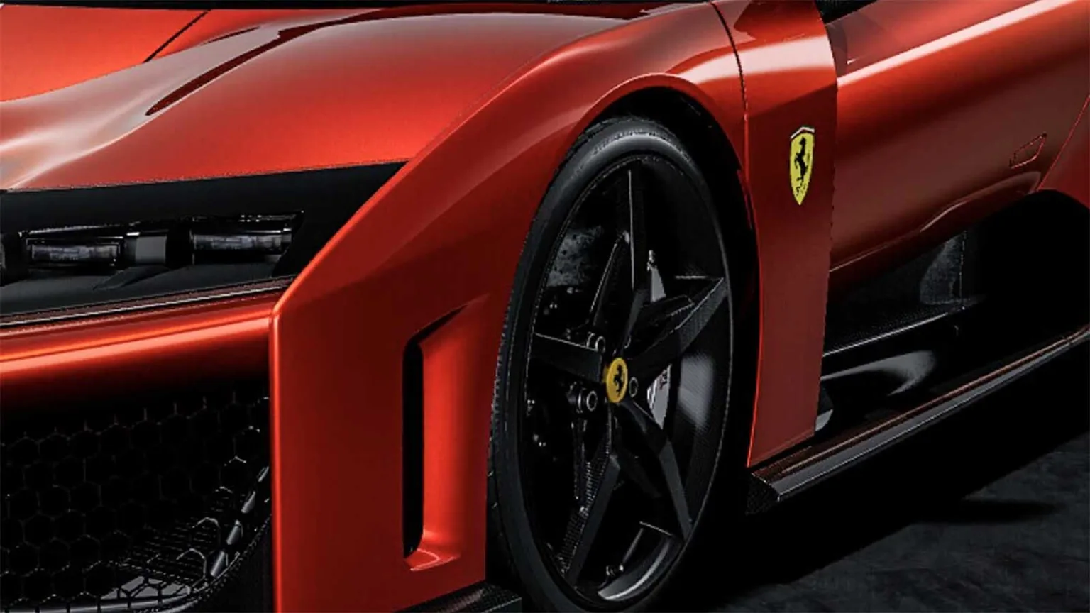 Den första bilen som nådde Europa är lackerad i Rosso Taormina som är en mörk, vulkanisk röd nyans inspirerad av Etna. Nästan hela karossen är klädd i synlig kolfiber: splitter, sidor, tak, speglar och bakvinge. Det här är ingen Ferrari som försöker vara diskret. Den signalerar vad den är redan på håll. Även interiören är kompromisslös. Förarplatsen är klädd i röd Alcantara med kontrastsömmar och mer racerbil än lyxkupé. Fokus ligger helt på föraren. Komfort och vardagskörning är sekundärt.