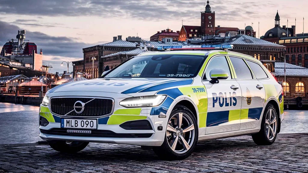 Svensk polis kör numera oftast bensinbilar. Man har ett avtal med Volvo som levererar Sveriges polisbilar.