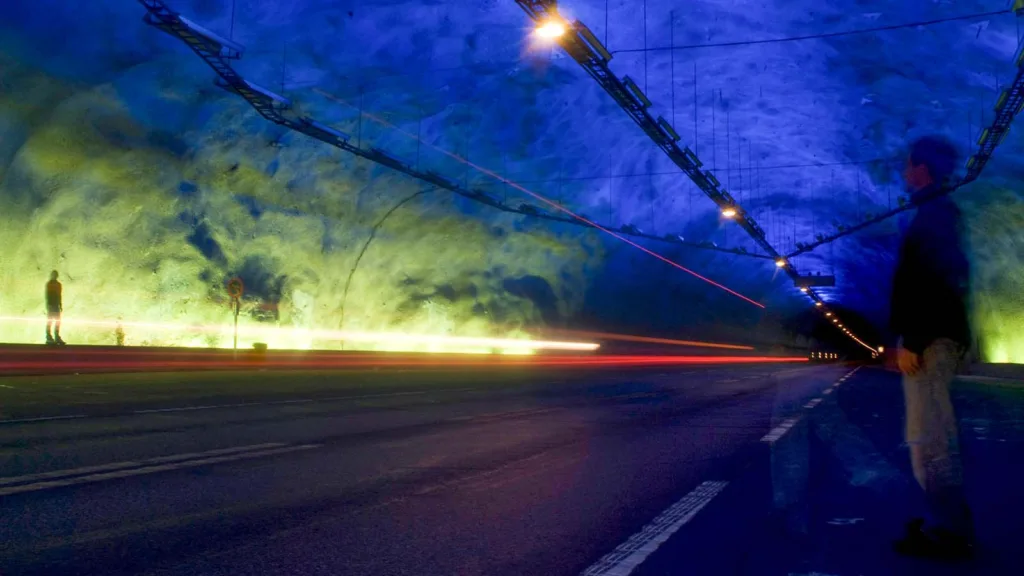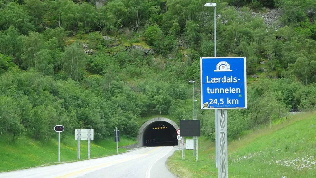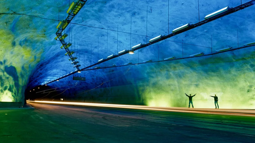 Världens längsta vägtunnel ligger i Norge. Den heter Laerdalstunneln och lockar turister från hela världen. Man kör in i tunneln från ett idylliskt nordiskt landskap och möts av bergets karga insida. Sedan följer mängder med kilometer under ett bergsmassiv som reser sig 1400 meter upp mot himlen.