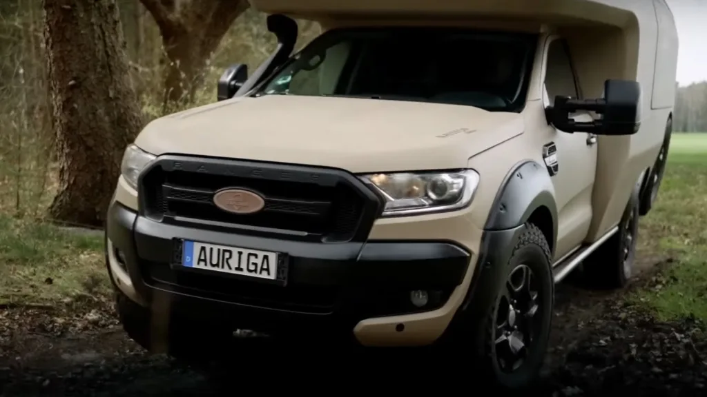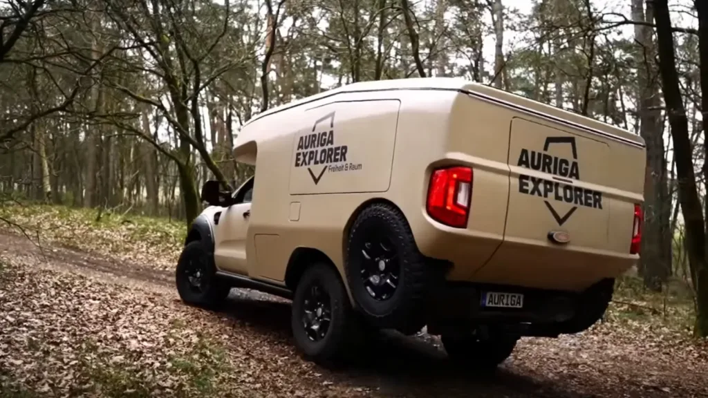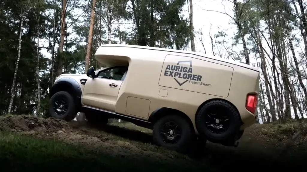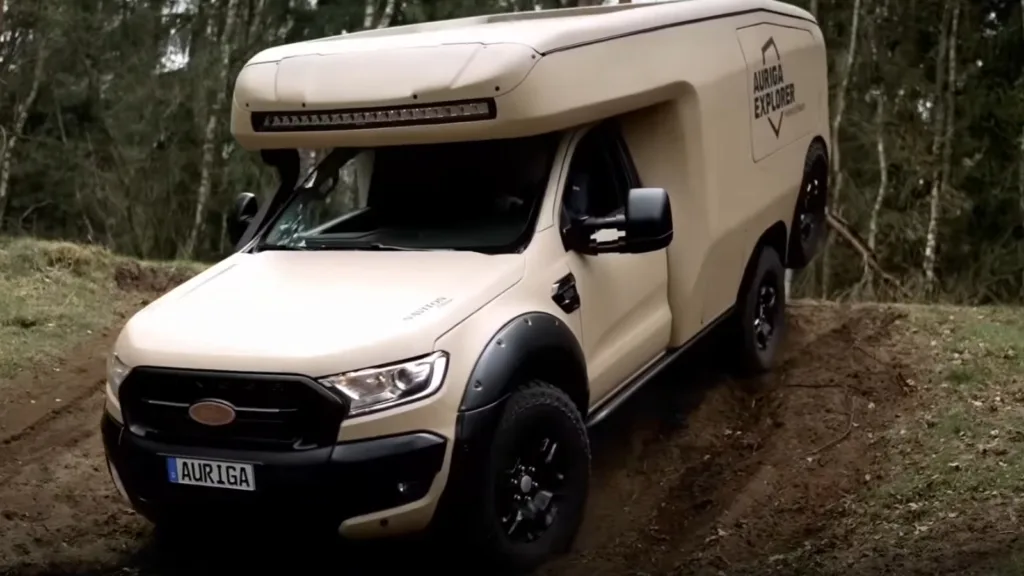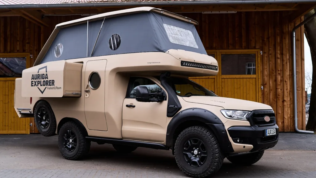 Nya Auriga Explorer Voyager är baserad på en Ford Ranger, men ser en aning mer robust ut. Bak sitter två stödhjul som ser ut att sväva en halv meter ovanför marken. Ett unikt designinslag. Men den som tror att den är sexhjulsdriven blir besviken, det är helt enkelt reservhjul. Om inte annat ger dem husbilen ett riktigt dramatiskt utseende. Samtidigt har pickupens flak bytts ut mot en rymlig husbilskabin. Bilen är nu 2,25 meter hög, så att stå upp är inga problem.