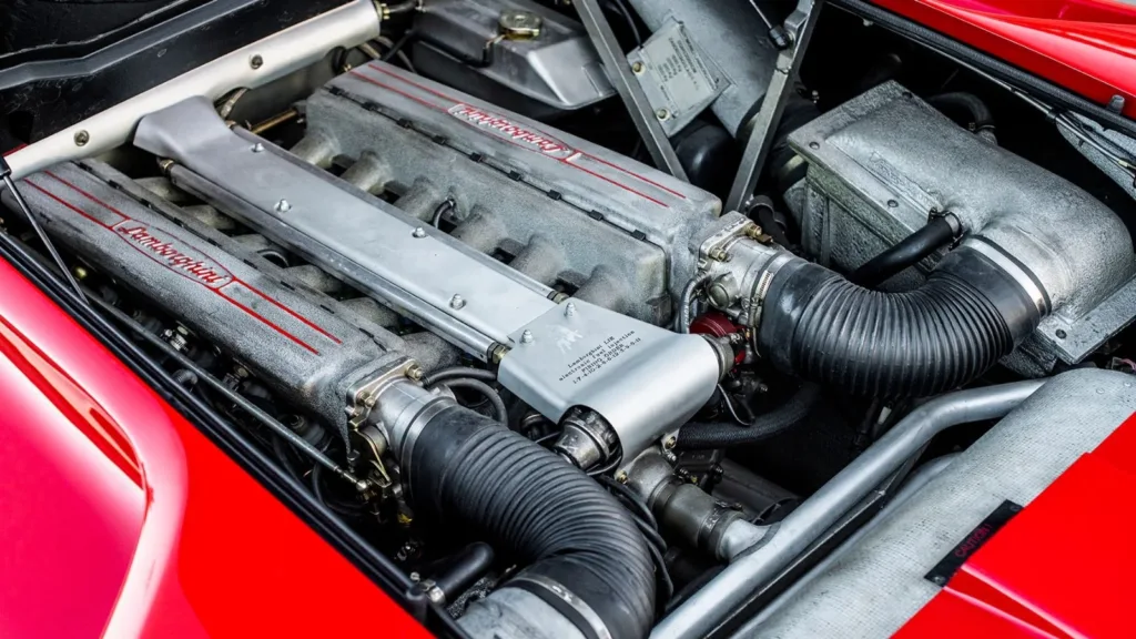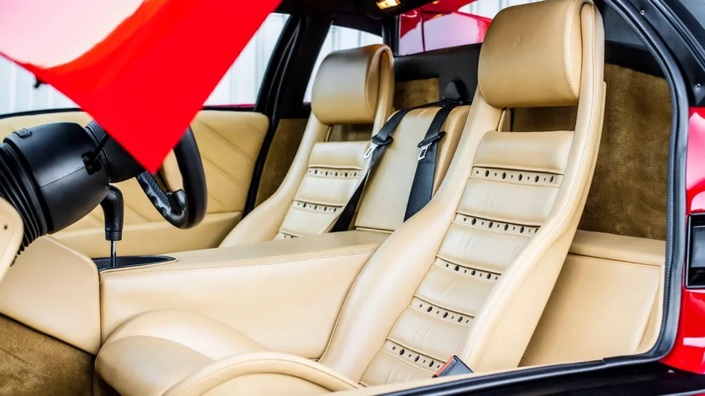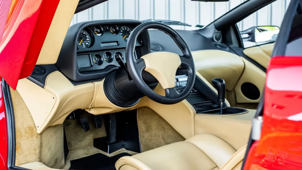 Bilen kommer i klassiska färgen Diablo Rosso, och lacken är perfekt bevarad.