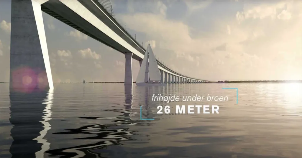 Att bygga en bro i dessa farvatten är en ingenjörsmässig utmaning. Danska Vejdirektoratet använder sig av 48 enorma prefabricerade betongelement som väger 4000 ton styck. Dessa fraktades ut på pråmar och sänktes ner med millimeterprecision på havets botten. Planen är att bron ska hålla i minst 100 år. Brons höjdpunkt är den centrala pylonen som når en höjd av 102 meter över havsytan. Den segelfria höjden blir 26 meter.