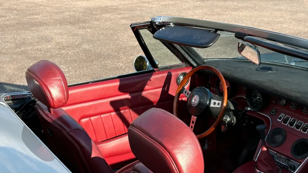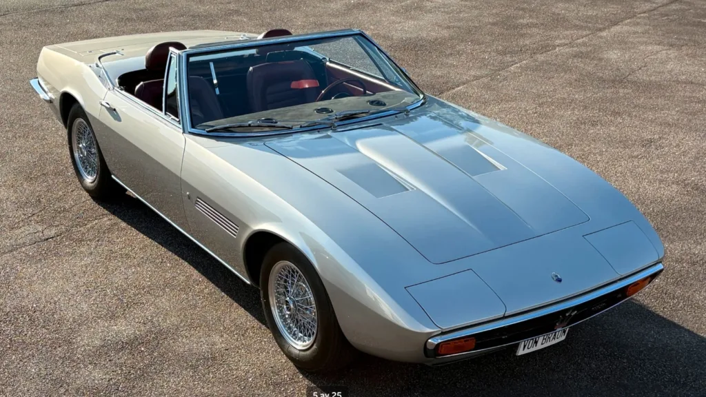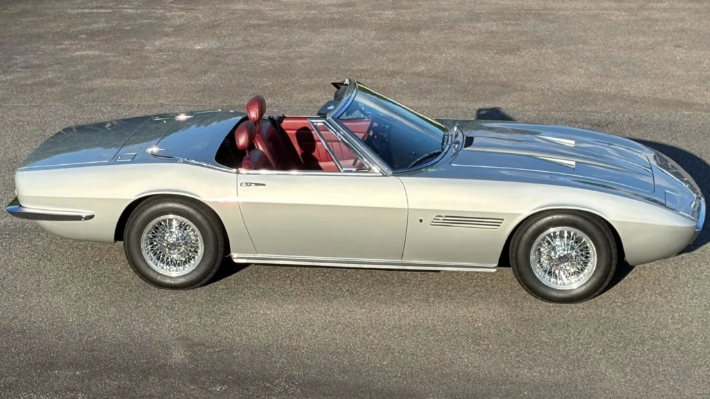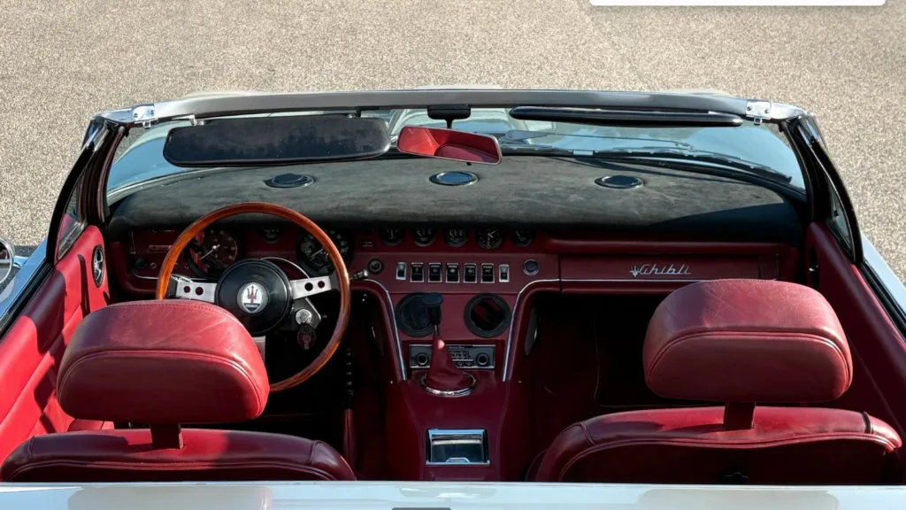 Det aktuella exemplaret är i enastående skick, med fullständig dokumentation och matchande chassi- och motornummer. Motorn har 320 hästkrafter, och karossen är lackerad i Argento Auteuil (metallic silver), som kombineras med en elegant och ursprunglig röd läderinredning. Och den klassiska färgkombinationen fångar Maseratis själ på ett unikt sätt.