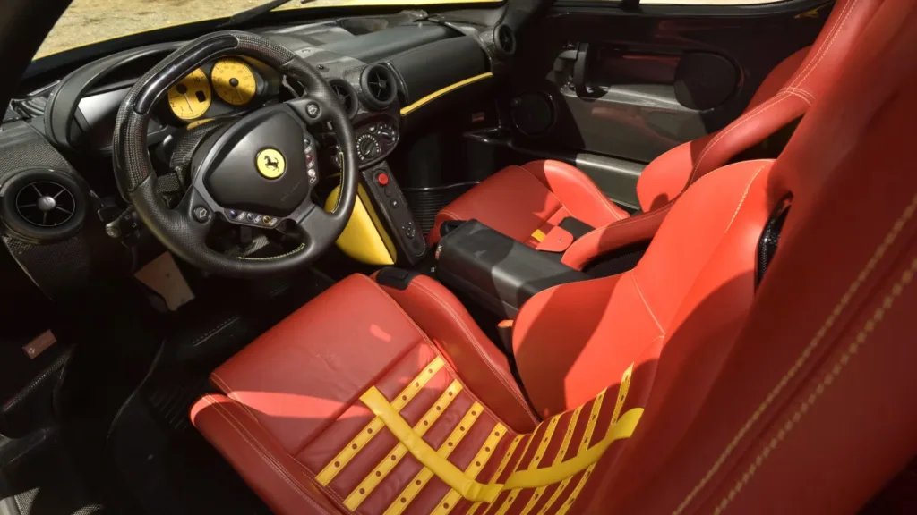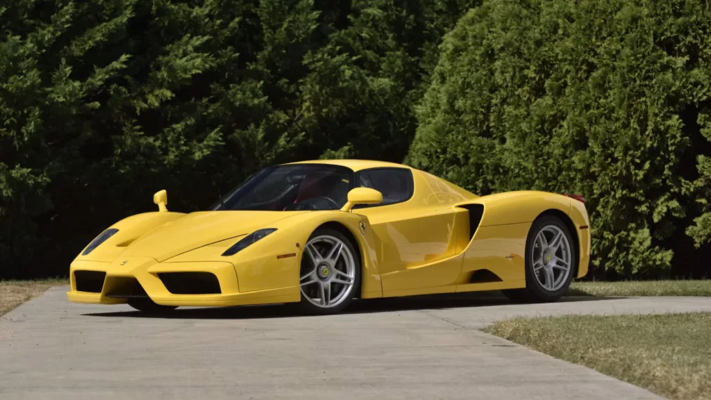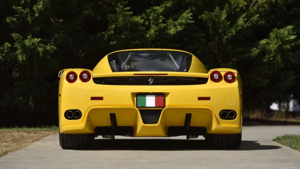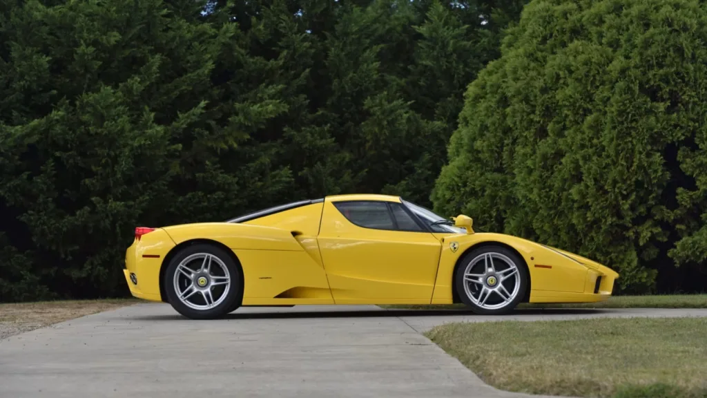 Ferrari Enzo räknas som en av de sista analoga superbilarna, och exemplet är ovanligt lite använt. Mätarställningen uppgick till 649 miles vid försäljningen, motsvarande 1 045 km. Drivlinan i rekordbilen består av en 6,0-liters V12-motor på 651 hästkrafter och 658 Nm vridmoment. Bilen är lackerad i Giallo Modena, en färg som endast 36 Ferrari Enzo levererades i.