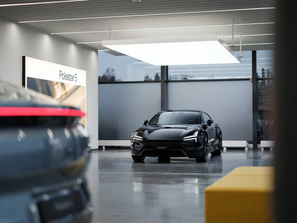 På fredagen öppnade Polestar ett rekordstort showroom hos Volvo i Kista. Samtidigt gick aktien ner till nytt bottenrekord och företaget bränner 1285 miljoner kronor i kontanter varje månad. Foto: Polestar