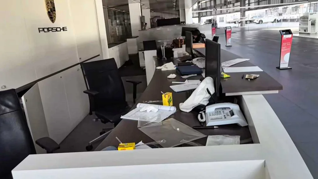 Porsche skakas av krisen i Kina. Nu kommer rapporter om två Porsche Center som plötsligt övergivits och tömts på bilar över natten. Porsche har tvingats gå ut och be kunder som förlorat sina kontantinsatser om ursäkt.