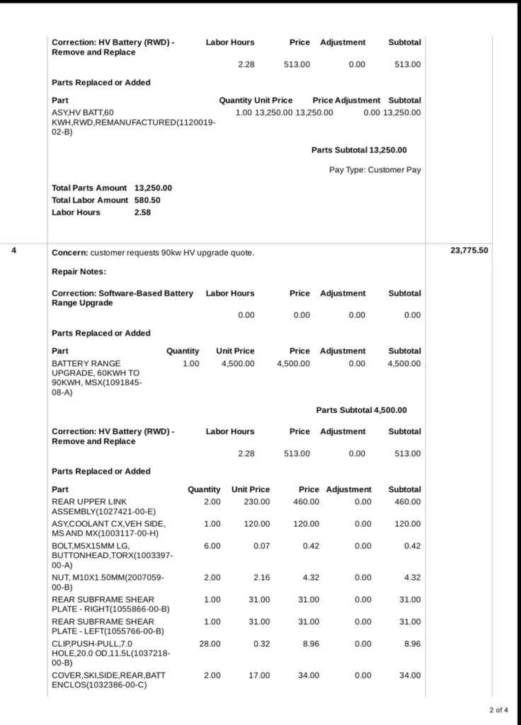 För den som vill ha det lite emer kraftfulla 90 kWh-batteriet ligger kostnaden för att byta till ett ersättningsbatteri på 18 000 dollar. Till det tillkommer reservdelar och kostnad för upplåsning av hela kapaciteten. Då landar priset för bytet på 23 262 dollar, motsvarande cirka 210 000 kronor.