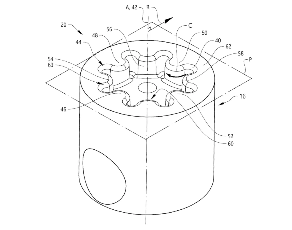 – Varje delande utskjutande del sträcker sig radiellt utåt från kolvens centrum och är konfigurerad för att påverka luft- och bränslefördelningen i kolvskålen, skriver Volvos ingenjörer i patentet.