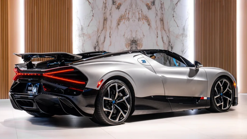 Mistral är den sista öppna modellen från Bugatti med den legendariska W16-motorn. Det gör bilen extra eftertraktad bland samlare. Även designen väcker uppmärksamhet. Bilen skiljer sig tydligt från tidigare modeller som Chiron. Mistral har bland annat en större hästskosgrill, vertikala strålkastare och stora luftintag i taket.