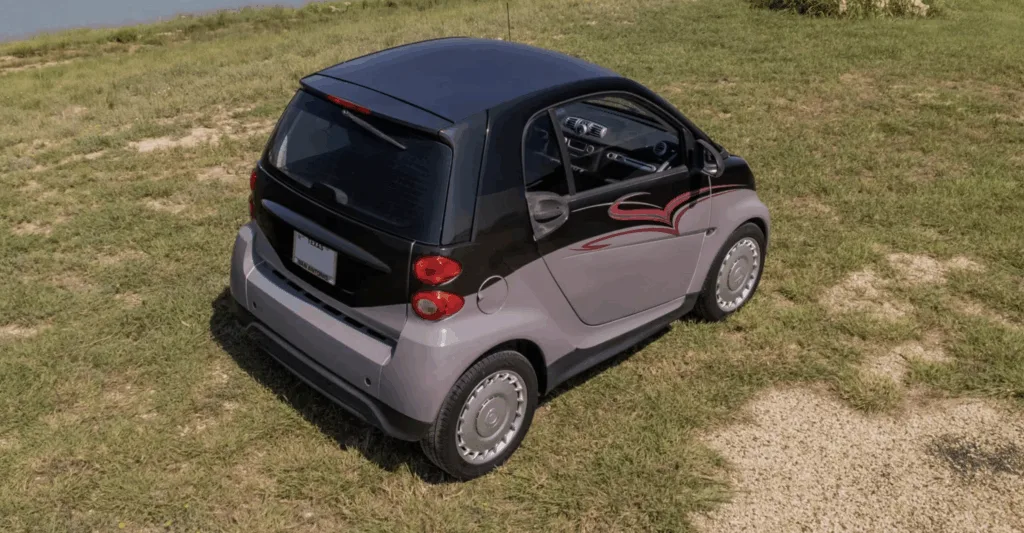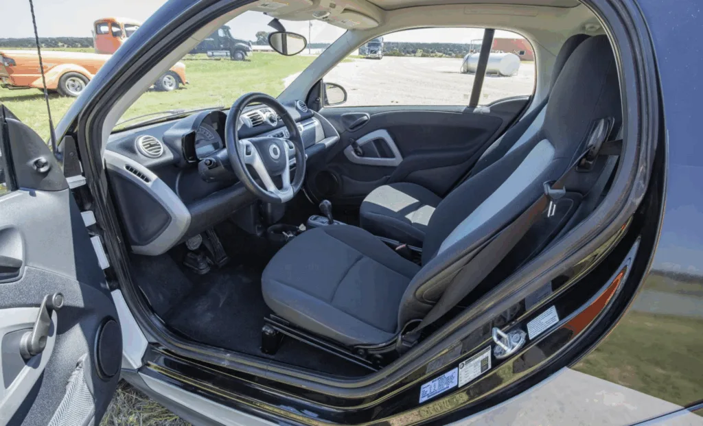 Och det som kanske är mest unikt med just denna försäljning… mellan Volvo-lastbilen och den specialbyggda husvagnen gömmer sig en bil. Det är en Smart ForTwo från 2013. Perfekt om man vill besöka en stadskärna, köra till något berg för en vandring eller helt enkelt behöver åka till mataffären. Den är liten nog att smyga fram nästan var som helst, driven av en 1,0-litersmotor med 70 hästkrafter, och dessutom snål på bränsle.