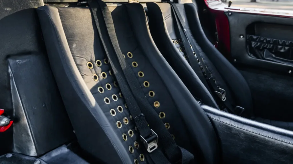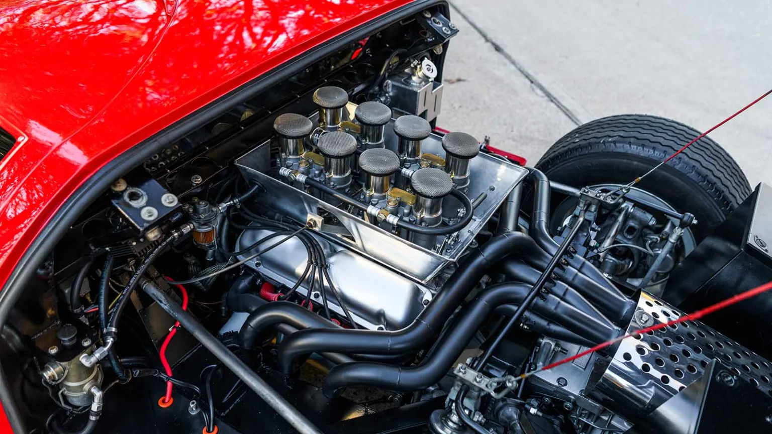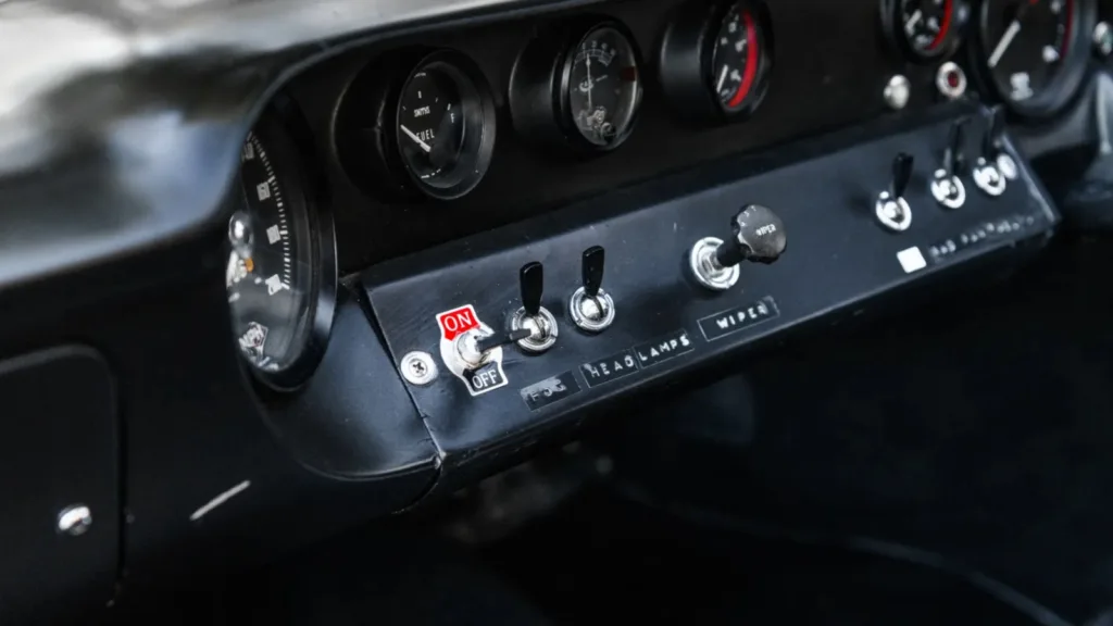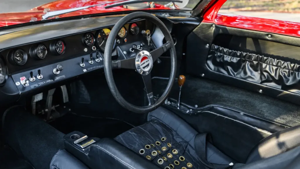 Bilen har även en mycket rik historia. 1966 ingick denna GT40 i en leverans om sju bilar som skickades till en Ford-återförsäljare i Michigan. Där fick bilen den klassiska röda färgen “Carmen” och en svart inredning. 1967 användes färgen officiellt i Fords reklamprogram. Än idag har bilen en röd carmen-lack. Det är mycket ovanligt. Och mycket eftertraktad av rika samlare.