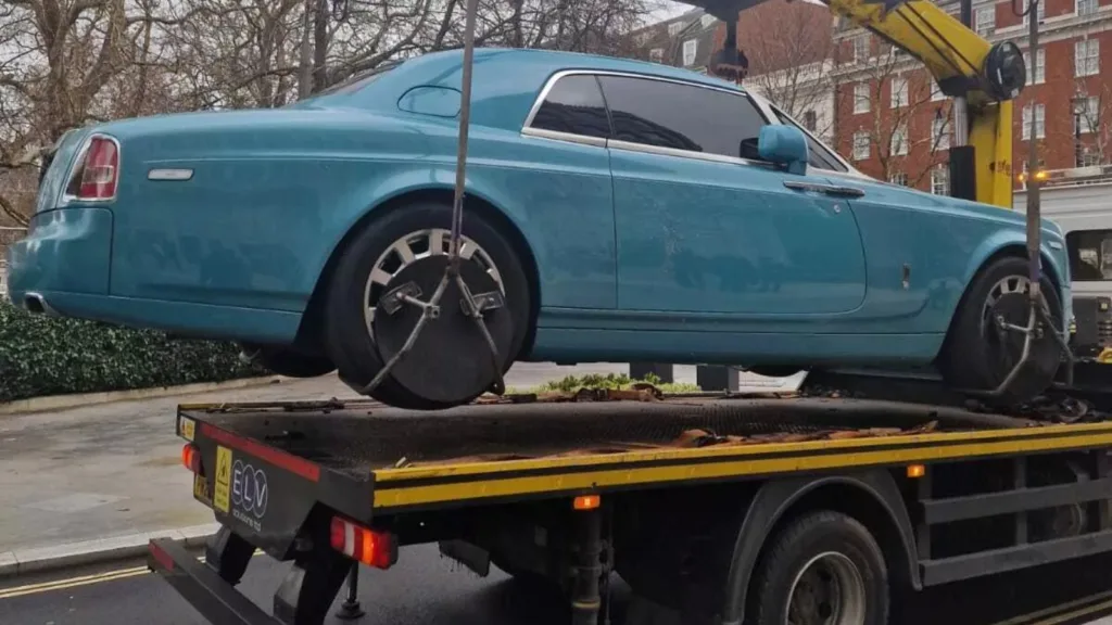 Nu har kommunen i London slagit till igen. Det gäller en blå Rolls-Royce registrerad i Saudiarabien. Bilen parkerades olagligt på trottoaren utanför hotellet Chancery Rosewood Hotel. Där kostar det dyraste rummet omkring 200 000 kronor per natt. Men nu har lyxbilen lyfts bort av kommunen. Bilen ställdes flera gator bort. Kommunens syfte var att skicka ett budskap: att olaglig parkering av lyxbilar inte tolereras.