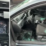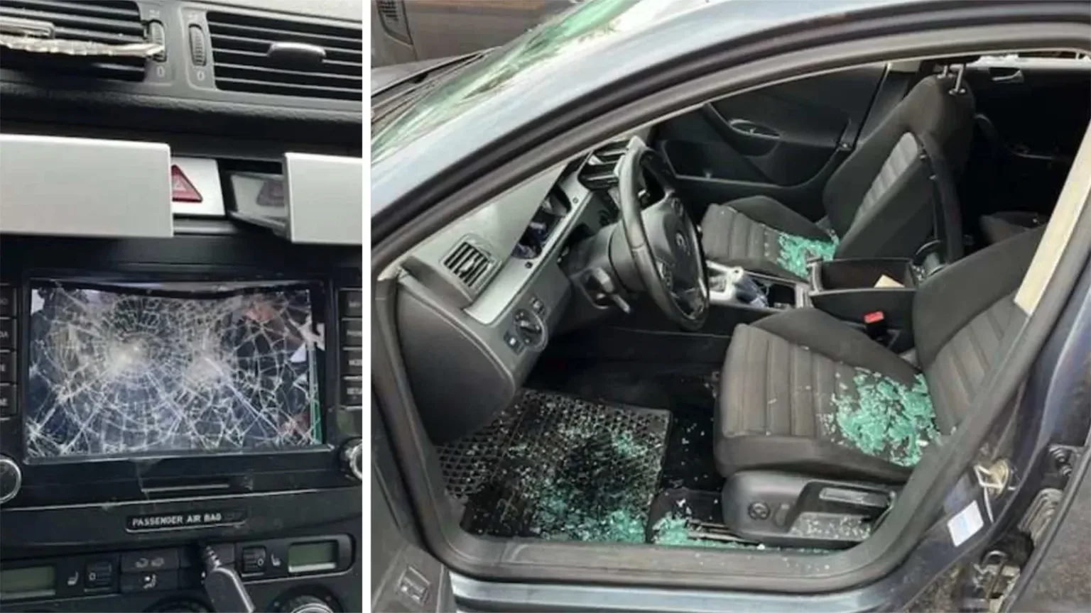 Raseriutbrottet stannade inte vid rutorna. När alla fönster var krossade gav han sig på instrumentpanelen. Först när bilen var svårt demolerad klev han lugnt ur och gick därifrån. På bilder ser man den helt sönderslagna bilen.