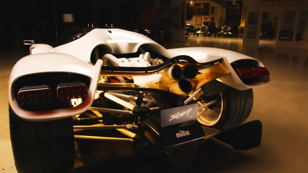 Nilu27 är ett eget grundbygge utan lånade delar och startar som en protest mot superbilarnas allt mer digitala värld. I stället för hybrid, fyrhjulsdrift och skärmar får bilen ett helt annat fokus: känslan bakom ratten. Under det exponerade motorpaketet sitter en 6,5-liters V12 utan turbo som varvar upp till 11 000 varv per minut. Den ska ge över 1 000 hästkrafter i en bil som bara väger runt 1 250 kilo.