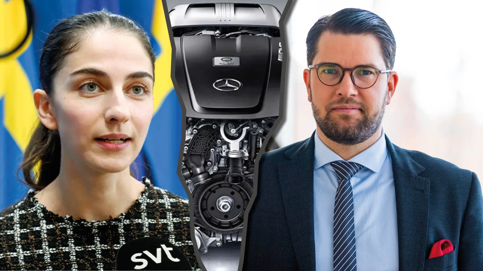 Upphävt förbud mot förbränningsmotor orsakar spricka inom Tidösamarbetet. Klimatminister Romina Pourmokhtari (L) och Jimmie Åkesson (SD) på kollisionskurs.