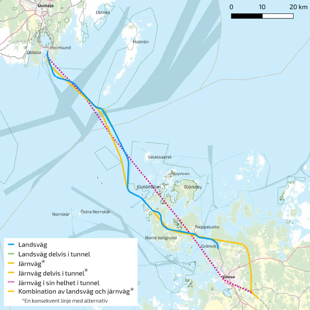 Samtidigt återstår utmaningar. Kvarken är ett Unesco-världsarv och ett av Nordens känsligaste havsområden. Finska Trafikledsverkets förutredning visar att alla lösningar – utom en full tunnel – påverkar både sjöfarten och delar av miljön. Därför befinner sig projektet ännu i ett prövande skede.