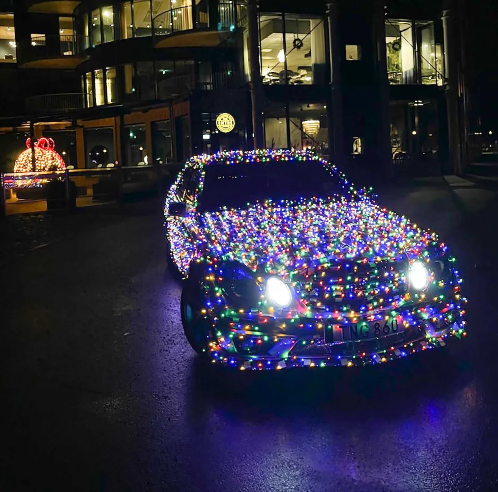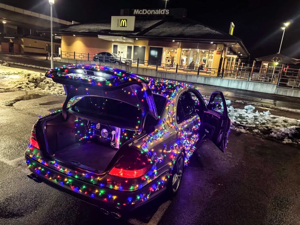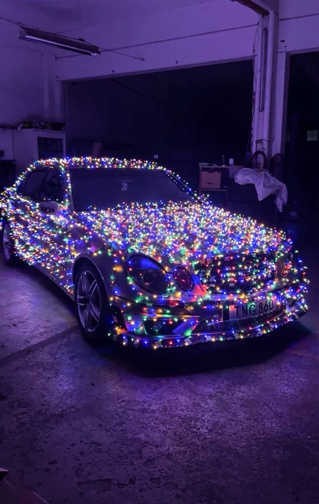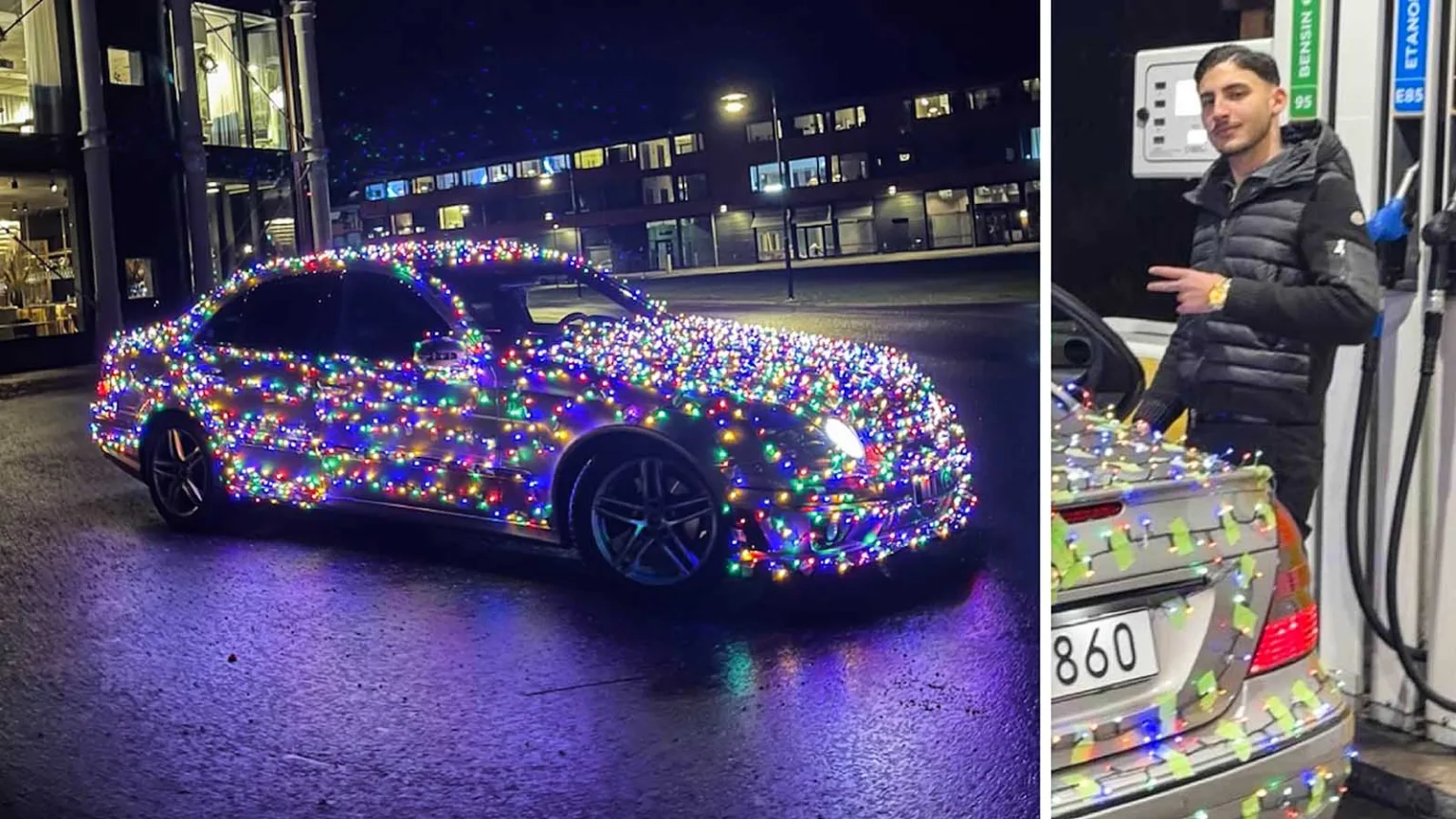 I klassikern “Ett päron till farsa firar jul” engagerar sig Chevy Chases karaktär Clark Griswold med att montera 150 000 italienska juleljus i familjens dyra villa utanför Chicago. Nu har en ung bleking gjort detsamma. Fast han valde en Mercedes.
