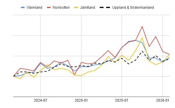 Fortfarande är det i storstäder allra flest elbilar köps. Men nu ökar köpen kraftigt i Småland, Värmland, Norrbotten och Jämtland, visar Carlas analys. I flera fall har efterfrågan fördubblats eller tredubblats på bara två år. Många som bor i glesbygd kan spara åtskilliga tusenlappar på elbil nu när bränslet har rusat till nya chocknivåer.