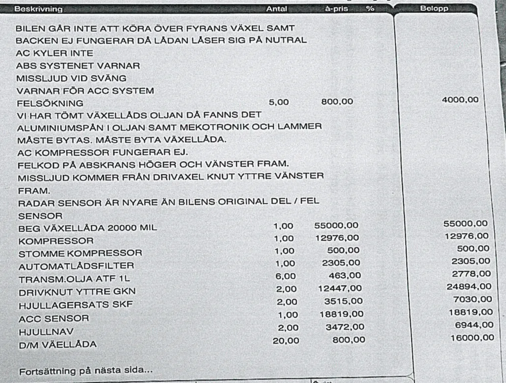 Därtill kommer bilen med en lista på fem dyra fel från en bilverkstad – bland annat lär ett växellådsbyte krävas. Bilen är också belastad med en kreditspärr – men den löses när Kronofogden betalar skulden till kreditgivaren. Trots alla brister är intresset stort. Redan ett dygn efter att budgivningen startade har högsta budet rusat upp till 280 000 kronor. Men det är fortfarande en bit kvar till de 400 000 som Kronofogden satt som utropspris. Den som vill lägga ett bud har på sig till den femte november – då löper auktionen ut.