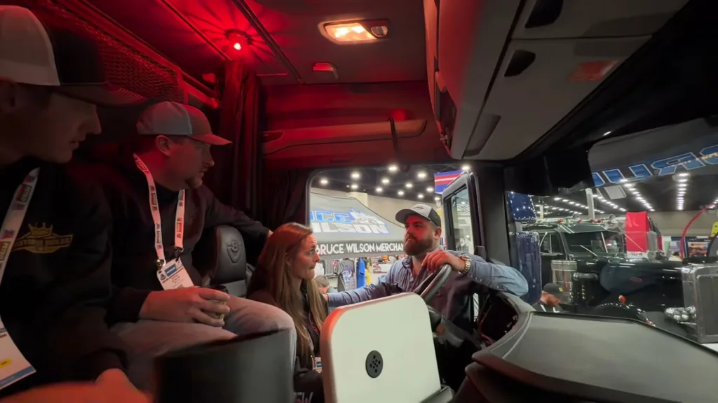 Det som möter de amerikanska förarna är något helt annat än de är vana vid. I USA dominerar fortfarande långhuvade lastbilar, medan Scanias frontbyggda hytt ser kompakt ut från utsidan. Men när dörren öppnas blir reaktionen ofta densamma.