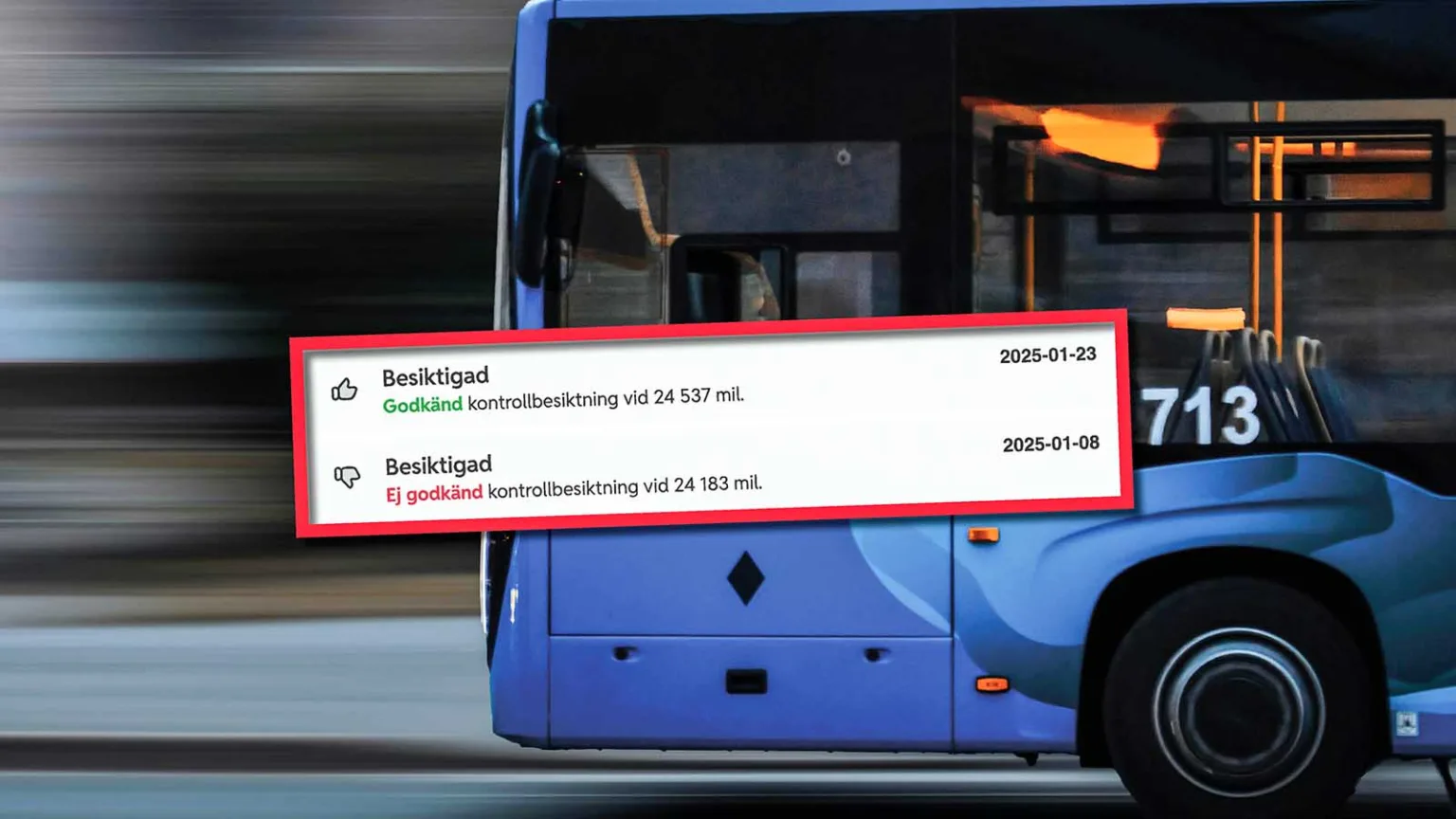 Vi tar upp ett exempel på en buss från Nobina. Den har underkänts två gånger vid besiktningen. Efter första besöket körde den 120 mil innan den besiktades igen. Andra gången körde de 60 mil.