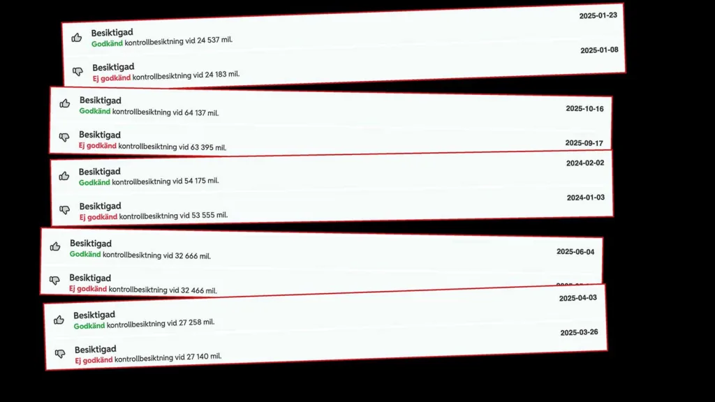Den 14 november 2025 inträffade en tragisk dödsolycka med en SL-buss vid Kungliga Tekniska Högskolan i Stockholm. Den bussen var godkänd av besiktningen vid olyckan. Men den hade vid ett tidigare tillfälle blivit underkänd och sedan rullat 200 mil innan den till slut lyckades rulla igenom besiktningen.