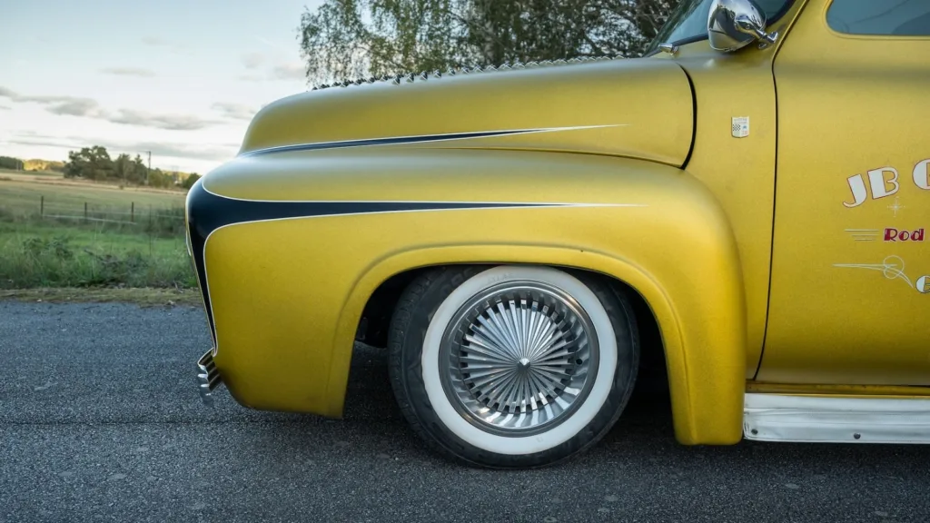 Ford F-100 från 1955 är en av de mest ikoniska pickupsen från 50-talet. Men denna bil utmärker sig på flera sätt. Redan på 60-talet byggdes den om till en low rider. Då fick den stödhjul och plåtmedar under karossen, som skyddar då den sänktes extremt lågt. Idag är bilen prisbelönt och har vunnit utmärkelser, på bland annat Stockholm Hot Rod Show. Och nu ska pickupen säljas i Uppsala.