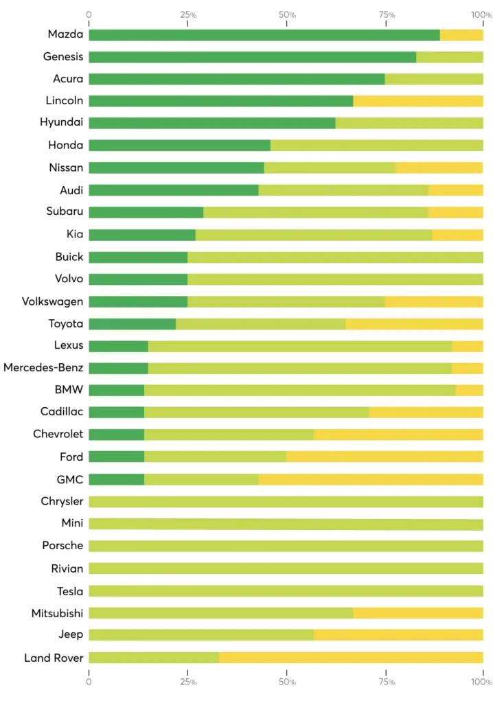 – Enligt vår analys av krocktester, bromsning, väghållning och krockundvikande teknik har Mazda, Genesis och Acura de säkraste nya bilarna, uppger Consumer Reports.